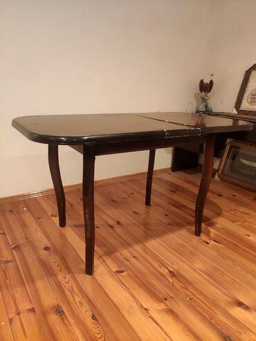 Taxta yemək/mətbəx masası - Material: bərk ağac, laklı parlaq səth - Rəng: tünd qəhvəyi - Forma: düzbucaqlı Ölçüləri:eni-80sm;uzunluğu-1m20sm. Masa açılandı,açı...