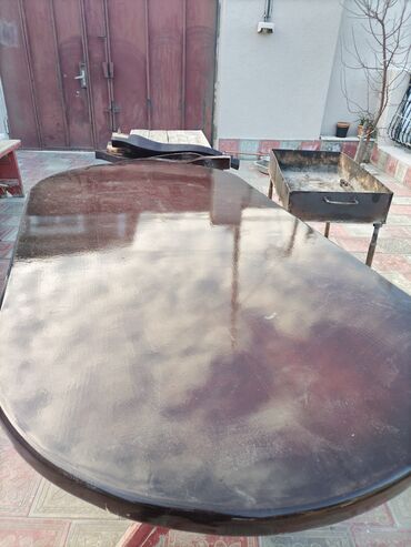 Qonaq masası, İşlənmiş, Açılan, Taxta, Oval masa