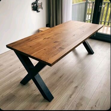 Metal ayaqları və taxta səthli müasir üslubda masa. Yüksək keyfiyyətli materiallardan hazırlanıb, uzunmüddətli istifadə üçün uyğundur. Bu masa həm ev, həm də ofis üçün ideal seçimdir. Geniş səth yemək, işləmək və ya qonaqları qəbul etmək üçün rahatlıq təmin edir. Minimalist dizaynı sayəsində müxtəlif interyerlərə asanlıqla uyğunlaşır. Masanın möhkəm konstruksiyası sabitlik və təhlükəsizlik təmin edir.
