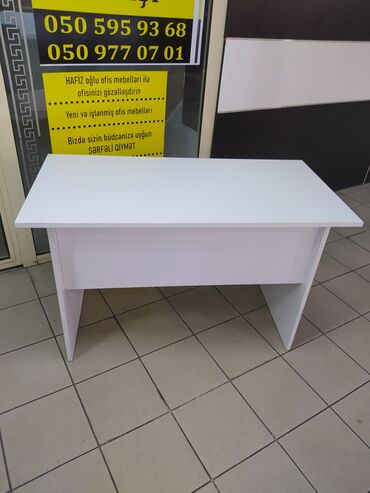 Ofis Masalari sekilde gorunduyu kimidir hazir veziyyededdi bizde tam yenidi istenilen reng ve istenilen olcudede sifaris vere bilersiniz olculeri 120 sm 60 smdi odenis nagd ve ya kocurtme yolu iled...