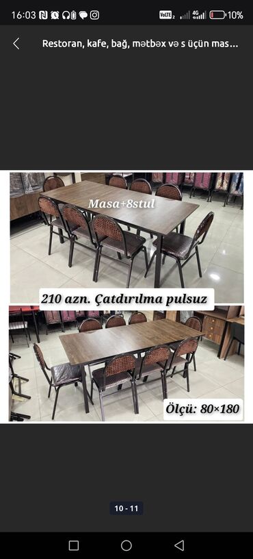 Masa dəsti – stol və stul komplektləri - Variant 1: Masa + 12 ədəd oturacaq • Ölçü: 93×280 • Rəng seçimi mövcuddur • Endirimli qiymət: 799 AZN • Bakı, Sumqayıt, Xırdalan – çatdırılma və qu...