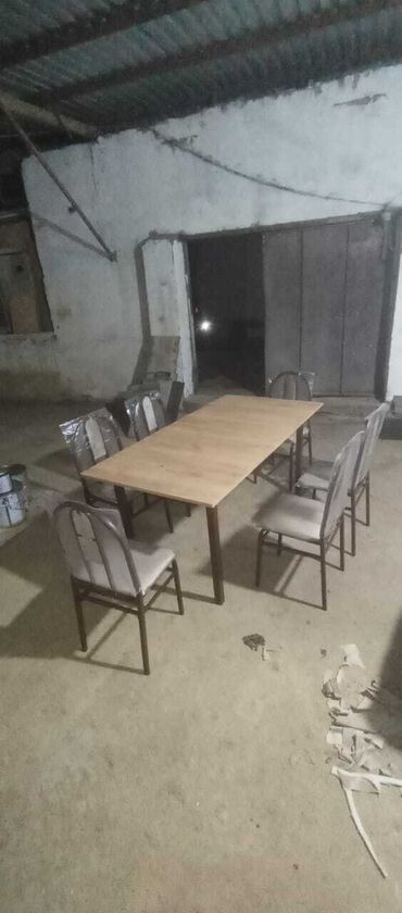 Yemək otağı üçün masa–stul dəstləri 1) Dəst 1: - Masa ölçüsü: 90x170 sm - 6 ədəd stul - Stul oturacaq hündürlüyü: 47 sm - Rəng: krem masa, tünd mavi məxməri tipli stullar - Çatdırılma pulsuz - Qiy...