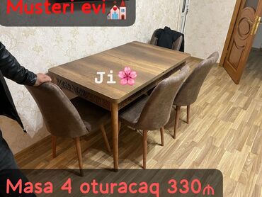 - Şəkildə göstərilən qiymət: 330₼ (Masa 4 oturacaq 330₼).