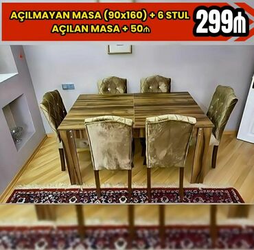 Qonaq otağı üçün, Yeni, Açılan, Dördbucaq masa, 6 stul