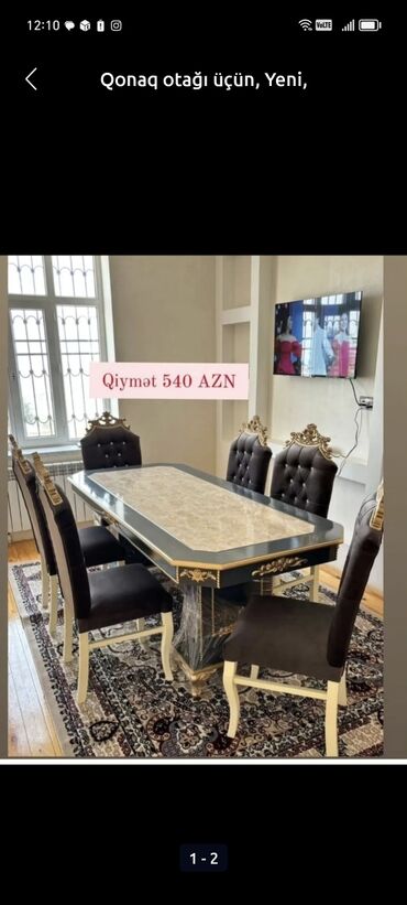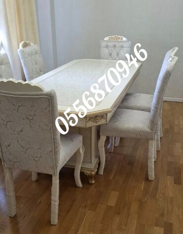 Masa dəsti Yeni sifarişlə hazırlanan yemək otağı dəstləri Məhsul: Yemək masası və stul dəstləri (fərqli modellər) - Model çeşidləri: klassik qızılı oyma naxışlı, qara-qızılı premium, açıq rəng min...