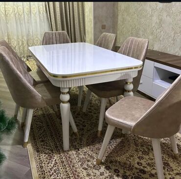 Qonaq otağı üçün, Yeni, Açılan, Dördbucaq masa, 6 stul