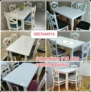 Mətbəx üçün, Yeni, Açılmayan, Dördbucaq masa, 4 stul