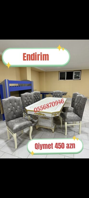 Qonaq otağı üçün, Yeni, Açılmayan, Dördbucaq masa, 6 stul