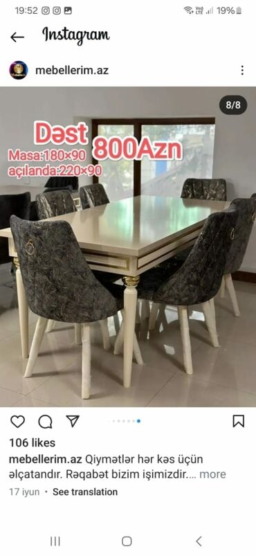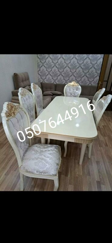 Qonaq otağı üçün, Yeni, Açılmayan, Dördbucaq masa, 6 stul