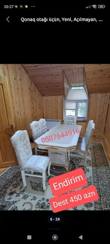 Qonaq otağı üçün, Yeni, Açılmayan, Dördbucaq masa, 6 stul