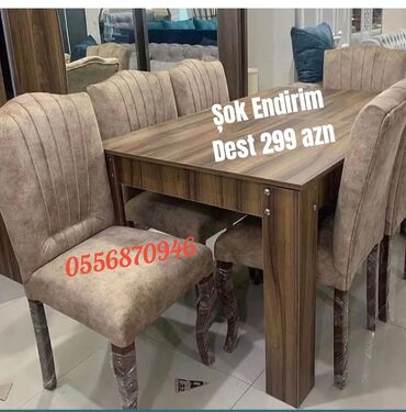 Qonaq otağı üçün, Yeni, Açılan, Dördbucaq masa, 6 stul