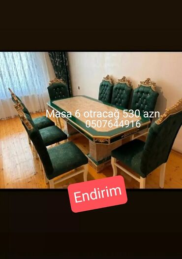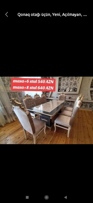 Qonaq otağı üçün, Yeni, Açılan, Dördbucaq masa, 6 stul