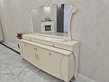 - Geniş bufet-komod və böyük bükümlü çərçivəli güzgü