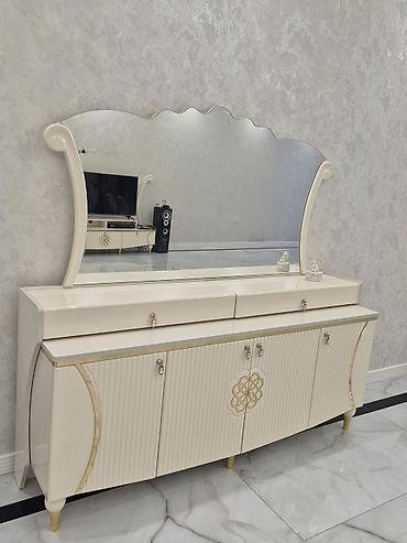 Qonaq otağı üçün mebel dəsti Qiymet tek tek 150 dest alindigda 400 Hecbir problemi yoxdur yeni qalib - Tərkib: - Böyük güzgülü konsol/komod: geniş üst səth, 2 yan şkaf bölməsi və 4 çekmece. Üstdə...