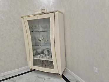Zal mebeli dəsti – krem rəngli, qızılı dekorativ haşiyələr və fiqurlu ayaqlar ilə. Dəst tərkibi: - 2 ədəd şüşə vitrini: hər birində iki şüşə rəf, yuxarı hissədə qızılı lent bəzək, aşağıda iri çekm...