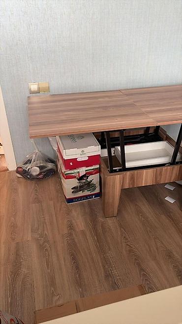 Mebellər hamısı, İstikbal və bellonadır Qonaq otağı dəsti – masa, stullar, vitrinqablar, komod-güzgü, künc divan və şüşə jurnal masası - Yemək masası: tünd qəhvəyi üstlü, krem rəng detallar ilə, 6...250 AZN