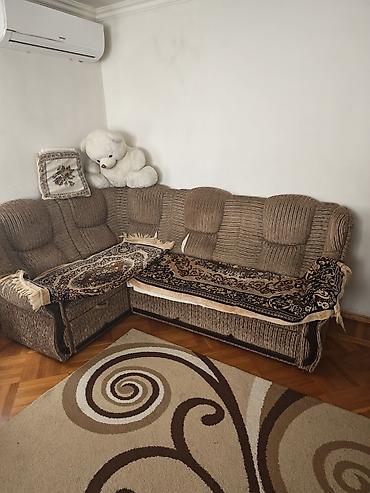 - Künc divanı: L şəklində, parça üzlü; qəhvəyi-bej rəng gamması; yüksək arxa hissə və yumşaq oturacaq zonası; otağın küncünə uyğun rahat planlama.