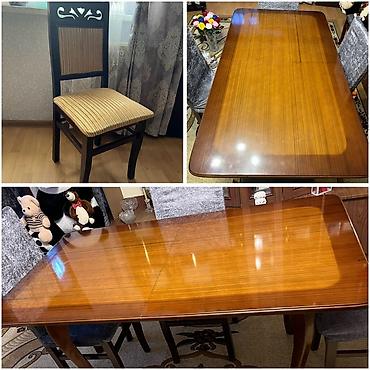 - Yemək masası: klassik üslub, parlaq taxta üstlük, yumşaq bucaqlar; ortadan artırıla bilən panel ilə genişlənən konstruksiya.
