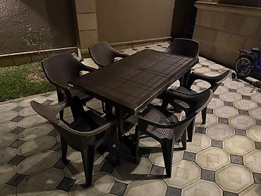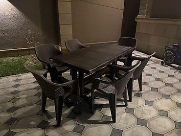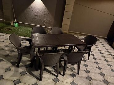 Yeni, Dördbucaq masa, 6 stul, Açılan, Skameykalar ilə, Plastik, Türkiyə