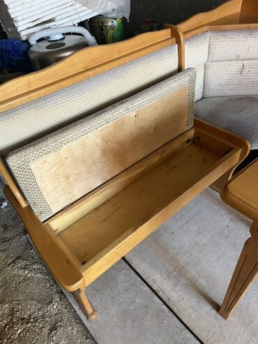 - Oturacaqlar: iki hissəli L-formalı künc skamyası, yumşaq süngərli parça örtüklü arxa və oturacaq hissələri