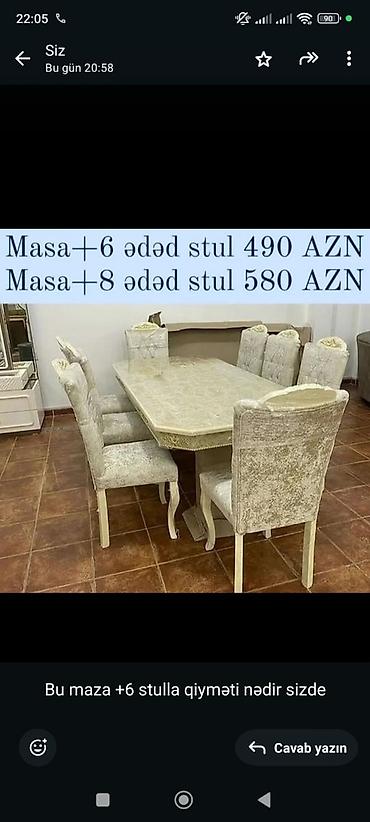 - Masa + 8 stul: 580 AZN, 640 AZN