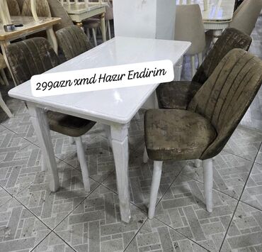 Mətbəx üçün, Yeni, Açılmayan, Dördbucaq masa, 4 stul