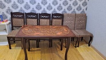 Qonaq otağı üçün, İşlənmiş, Dördbucaq masa, 6 stul