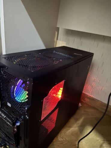 - Sistem bloku: qara korpus, arxa və yan hissədə RGB ventilyatorlar, üst hissədə əlavə hava çıxışı üçün deşikli panel. Yan paneldə pəncərə ilə işıqlandırma görünür.