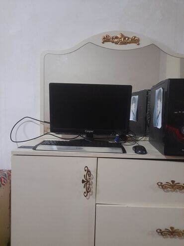 - Monitor: Casper LCD monitor (təxmini 19–22"), ön idarəetmə düymələri və VGA/DVI girişləri (kabellər şəkildə görünür).
