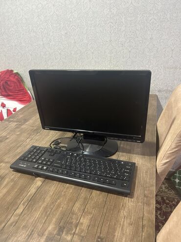 - BenQ LCD monitor (təxminən 21–22"; alt hissədə idarəetmə düymələri; VGA giriş kabeli görünür)