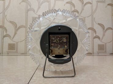 Masaüstü mexaniki saat – kristal korpuslu, dekorativ bazalı Qədimi saat Əlaqə üçün vatsap 050 316 28 27 - Dizayn: Kəsimli kristal şüşədən korpus, oval qara baza üzərində meta...