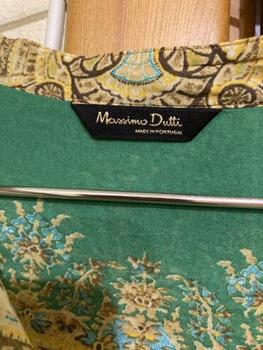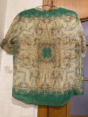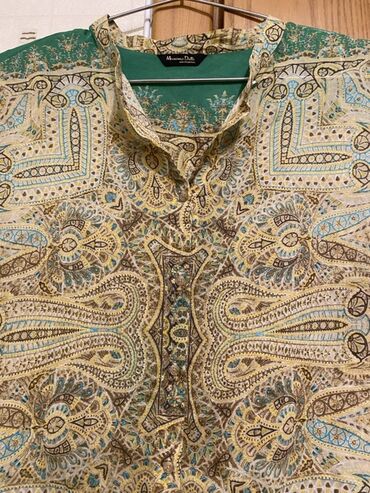 - Yaşıl fon üzərində bej, qəhvəyi və açıq mavi tonlarda mürəkkəb, etnik/paizə motivli print