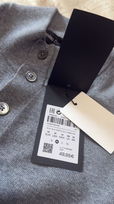 - Ölçü: M (EUR/USA M, MEX 38, UK M, BR M); etiketdə S–XL ölçüləri də qeyd olunub