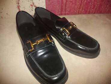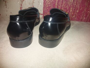 Qadın loafer ayaqqabıları 1 dəfə geyinilib. - Rəng: qara - Material: süet görünüşlü üstlük, içlik süni dəri - Dizayn: üst hissədə qızılı metal aksesuar, dekorativ tikiş detalları - Daban: yüngül, ...