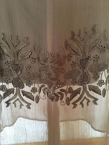 - Detallar: sinə və yan panellərdə, həmçinin ətəyin aşağı hissəsində zəngin, ton-sur-ton əl işi təsiri verən güllü naxışlar; incə haşiyəli dairəvi yaxa; qısa qapaq tipli qollar
