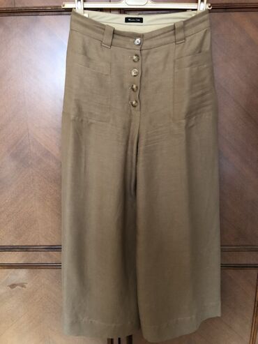 Zara qadın şalvarı ölçü 40-L bədənə uyğundu Təzədir geyinilməyib. Materalı qış üçün uyğundu - Rəng: açıq zeytun/çəllək yaşıl - Model: yüksək belli, “paperbag” effektli elastik bel - Bərkidilmə: me...