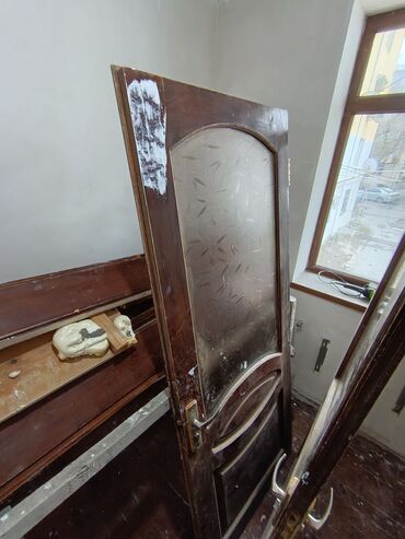 Daxili interyerlərdə klassik və vintage üsluba uyğun, işıq keçirən dekorativ şüşəli taxta qapı.