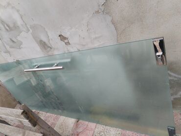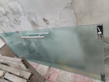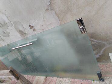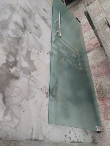 Şüşə qapı və vitrin panelləri dəsti - Material: temperli şəffaf şüşə panellər - Komplekt: bir ədəd şüşə qapı (yuxarı və aşağıdan metal bərkidicilərlə), bir neçə iri şüşə panel və arakəsmə şinləri ...