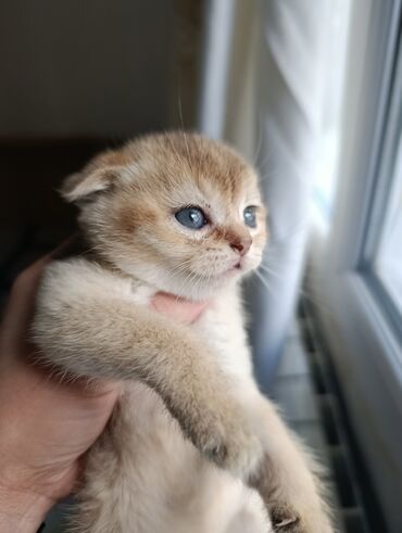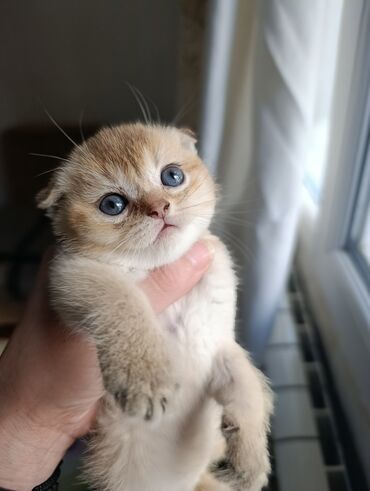 Şotland saf qan eyri qulaq (Scottish Fold) pişiyi Bayrama özel bu qiymate qoyulub oputnudu qeseng bala verir - Rəng: qızılı–şampan (golden shaded), ağ alt tüklə - Qulaqlar: tipik “fold” – önə doğru...