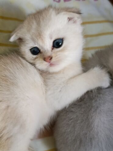 Skottish Fold balaları - Cins: Scottish Fold (qatlanmış qulaqlar) - Rənglər: ağ (şirin çəhrayı lentlə), boz tükdə qara zolaqlı (gümüş tabby), tam qara - Gözlər: iri, parlaq, ifadəli - Xüsusiyyətlə...