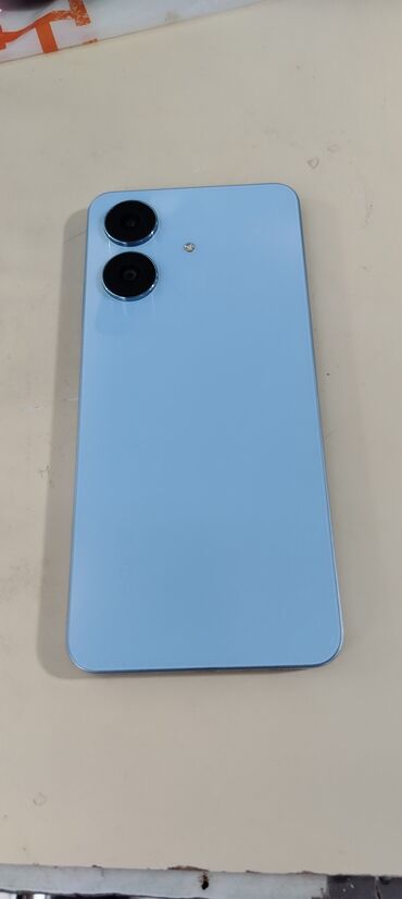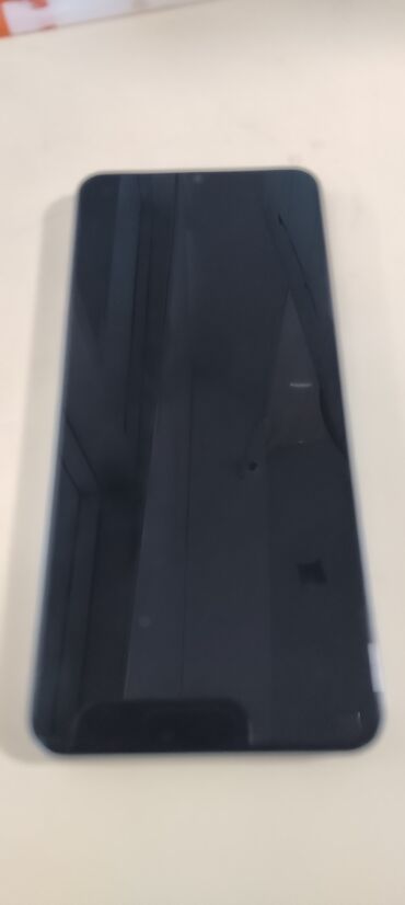 Xiaomi Redmi smartfon - Rəng: mavi, parlaq “Redmi” loqolu arxa qapaq - Ekran: tam ekran, su damcısı tipli kamera çıxıntısı olan ön panel; ekran kilidini sürüşdürmə ilə açma göstəricisi görünür - A...