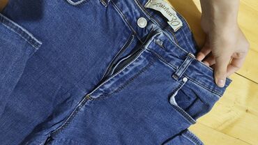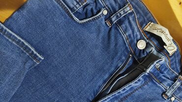 Açıq mavi rəngdə klassik kəsimli cins şalvar. - Material: denim (pambıq əsaslı). - Rəng: açıq-mavi, yüngül yuyulma effekti ilə. - Kəsim: düz balaq, orta bel. - Ciblər: öndə 2 əsas cib + xır...