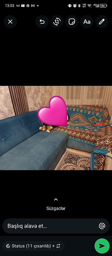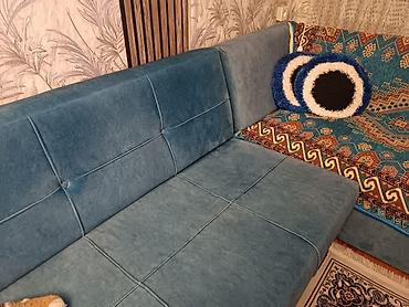 Künc divan – mavi rəng, yumşaq parça üzlüklü təcili satılır evden cixmslidir