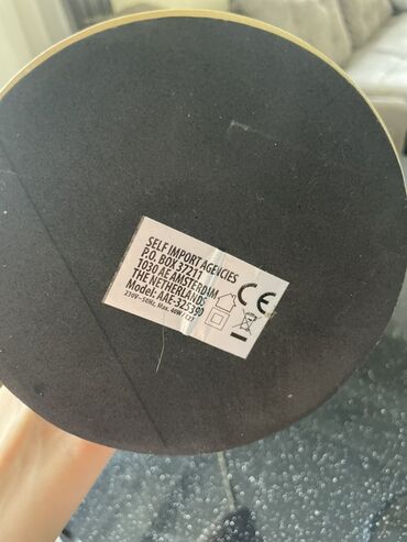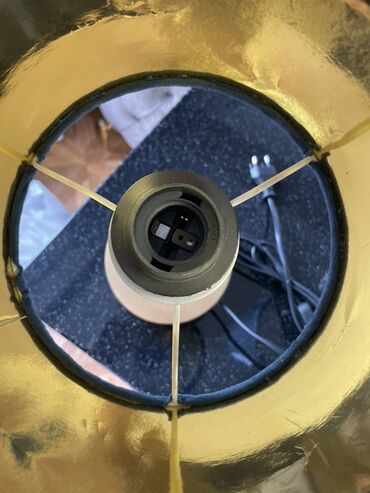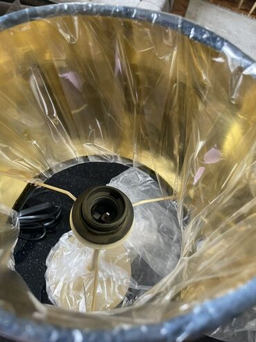 - Materiallar: metal gövdə və altlıq, məxmər effektli parça abaşur, iç hissəsi reflektor kimi qızılı örtüklü.