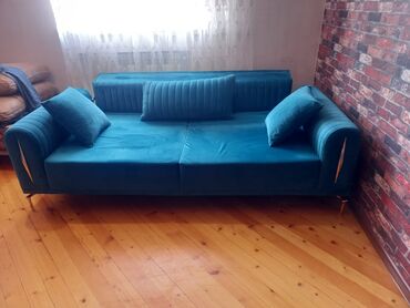 Mavi rəngli çevrilən divan
