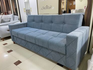 Mavi rəngli, geniş oturacaqlı 3 nəfərlik divan