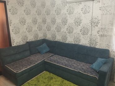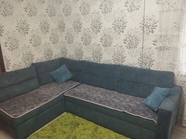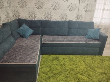 Mavi rəngli L formalı yumşaq künc divan - Parça: yumşaq, toxumalı məxmərə bənzər örtük, dərin mavi rəng - Forma: L şəklində künc divan, sağ-sol istiqamətdə küncə uyğun yerləşdirilə bilir - Oturaca...