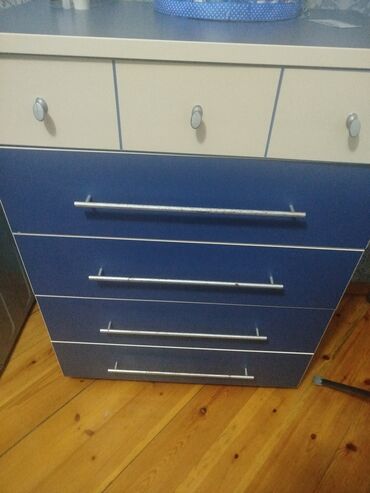 Mebel: 4 çekmecəli komod - Dizayn: İki rəngin kombinasiyası – qəhvəyi ağac teksturalı korpus və krem rəngli ön panellər. Minimalist xətli, inteqrasiya olunmuş metal tutacaqlar. - Material: Laminat...