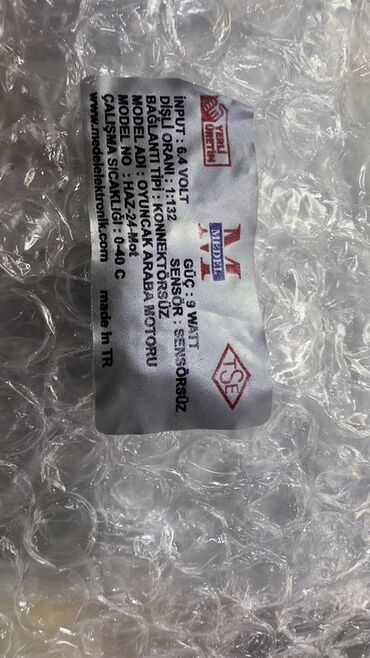 - Model adı/istifadə sahəsi (etiket): Oyuncaq araba motoru