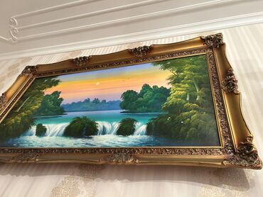 Əlavə dekor: klassik qızılı ornamentli çərçivədə mənzərə tablosu